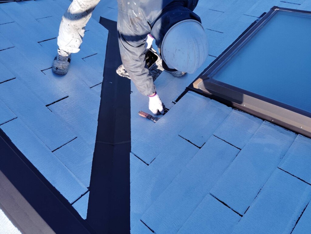 下塗りは、劣化した屋根材にしっかりと塗料を密着させるための「土台づくり」です。