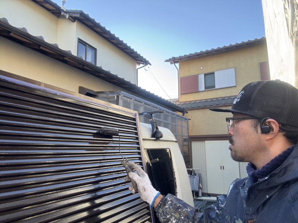 こちらの現場では、雨戸の上塗り作業を行なっています。