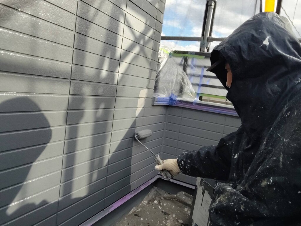 こちらの現場では、外壁の上塗り作業を行なっています。
