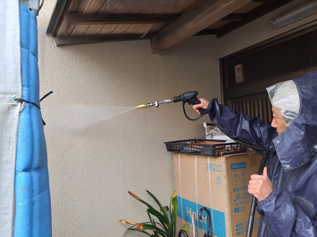 塗装前の大事な作業なので、綺麗に洗い流していきます。