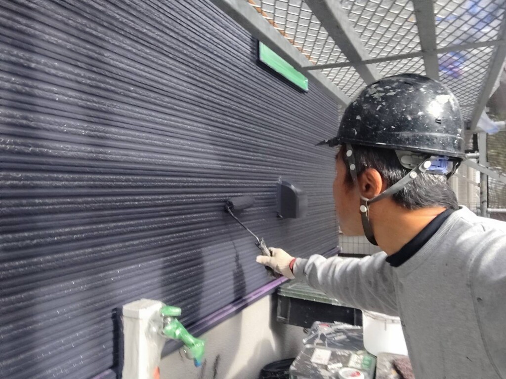 こちらの現場は、外壁の上塗り作業を行なっています。