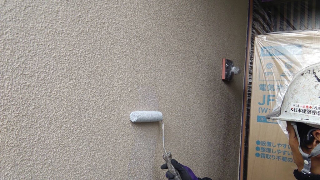 こちらの現場では、外壁の下塗り作業を行っています。