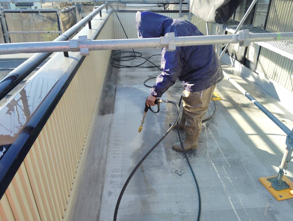 こちらの現場では、高圧洗浄を行なっています。