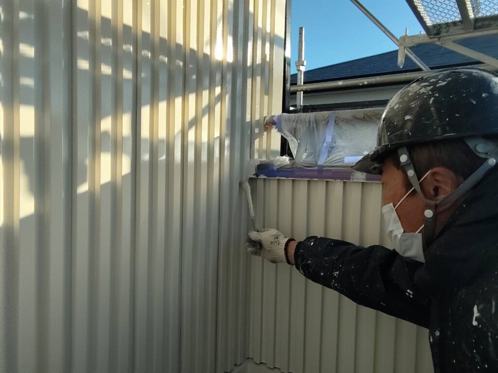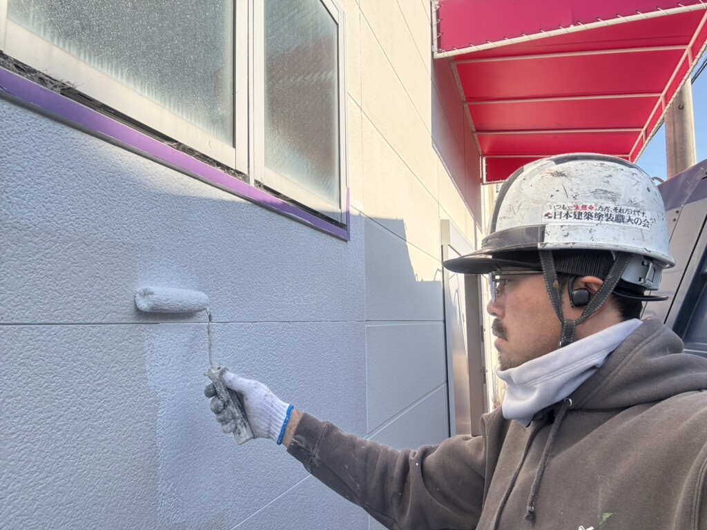 こちらの現場では、上塗り作業を行なっています。