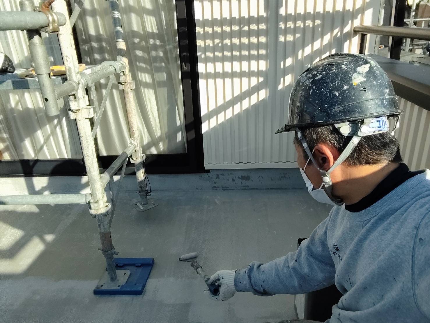 こちらの現場では、バルコニーの塗装作業を行なっています。