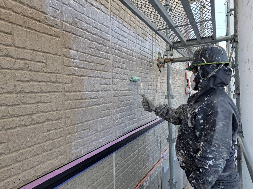 こちらの現場では、外壁下塗りを行なっています。