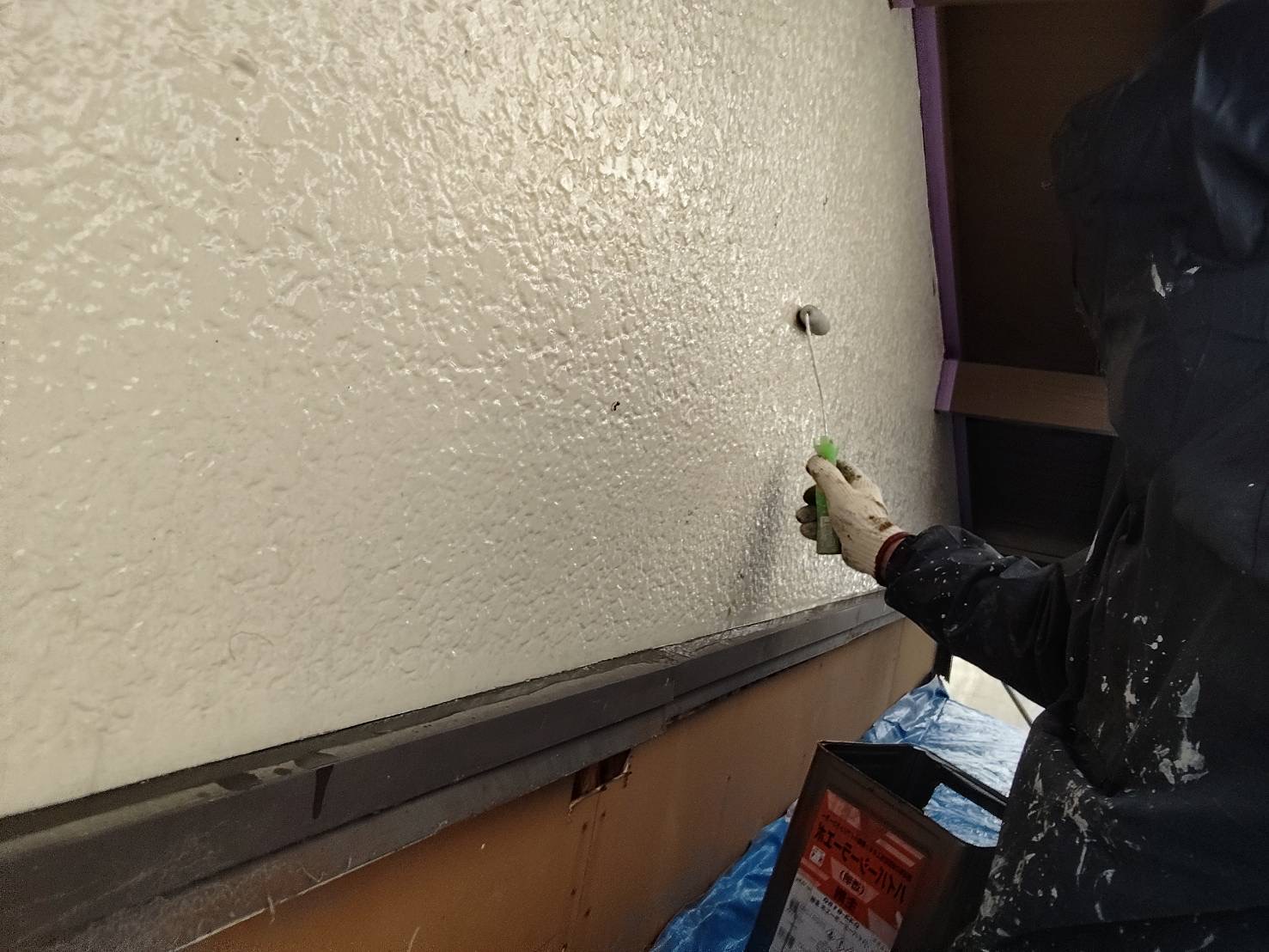 外壁材と上塗り塗料をしっかり密着させるために、丁寧に施工していきます。