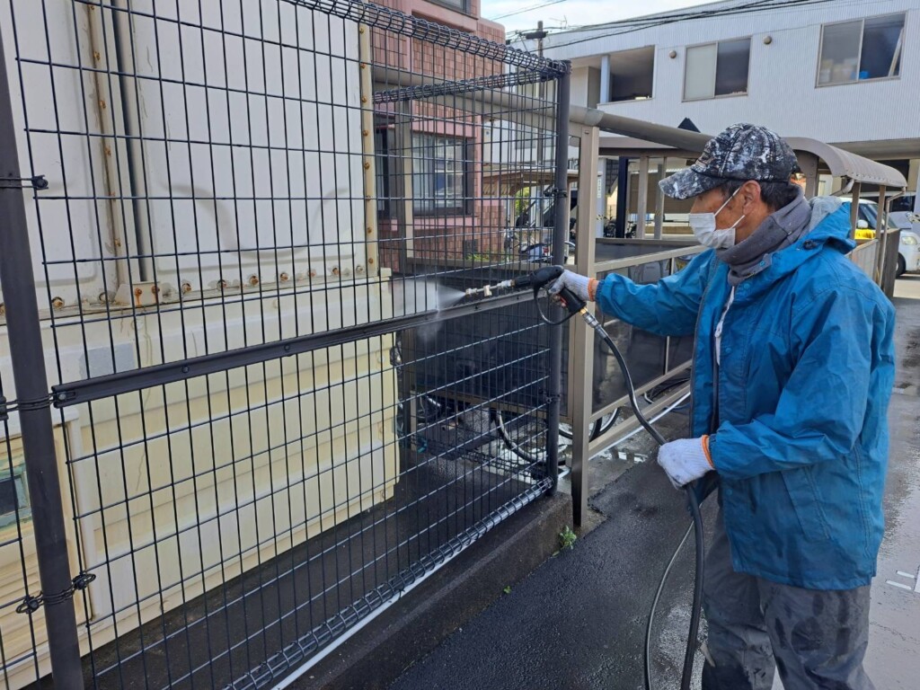 こちらの現場では、アパートオーナー様からのご依頼で、貯水タンク塗装のための、下準備。