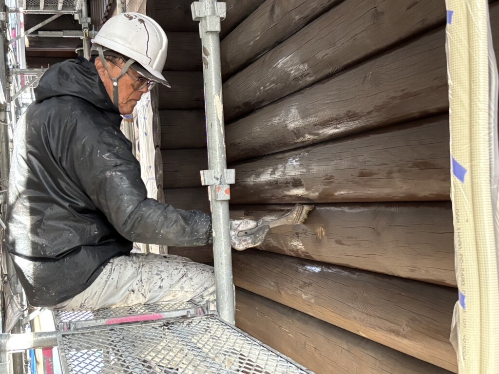 塗り替えることで、ログハウス本来の温かみがよみがえります。