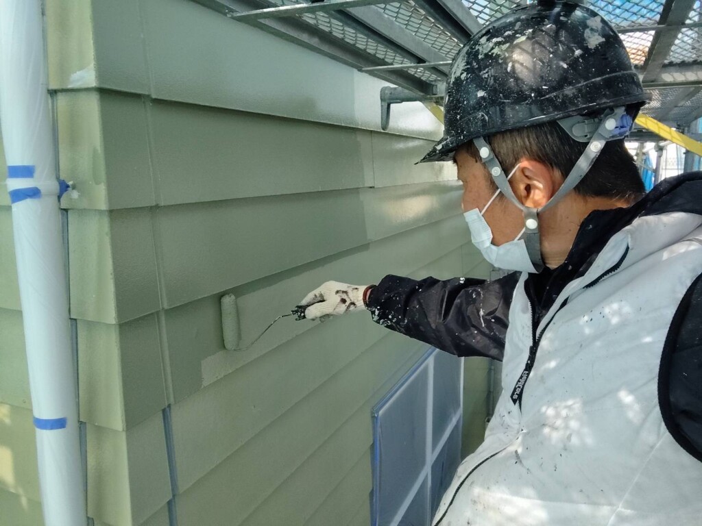 こちらの現場では、外壁の中塗り作業を行なっています。