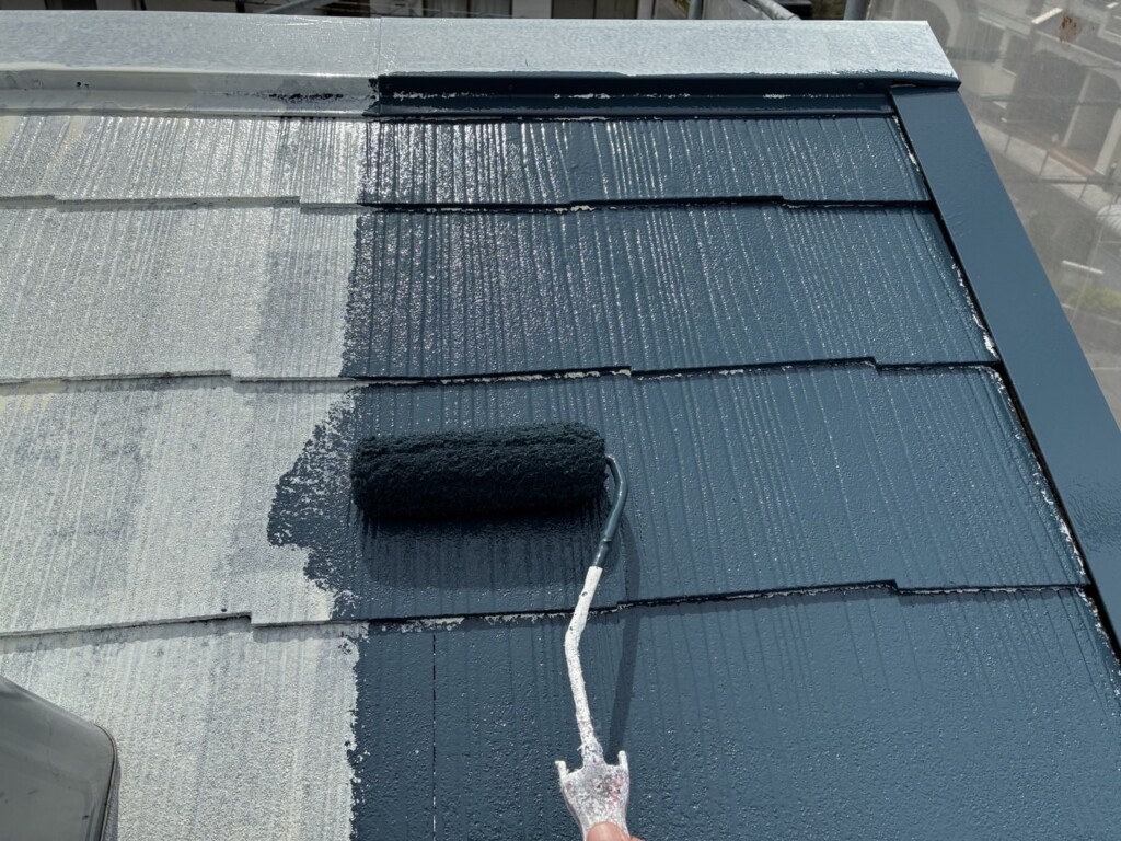 中塗りは塗膜の厚みを確保し、屋根を長持ちさせるための大切な工程です。