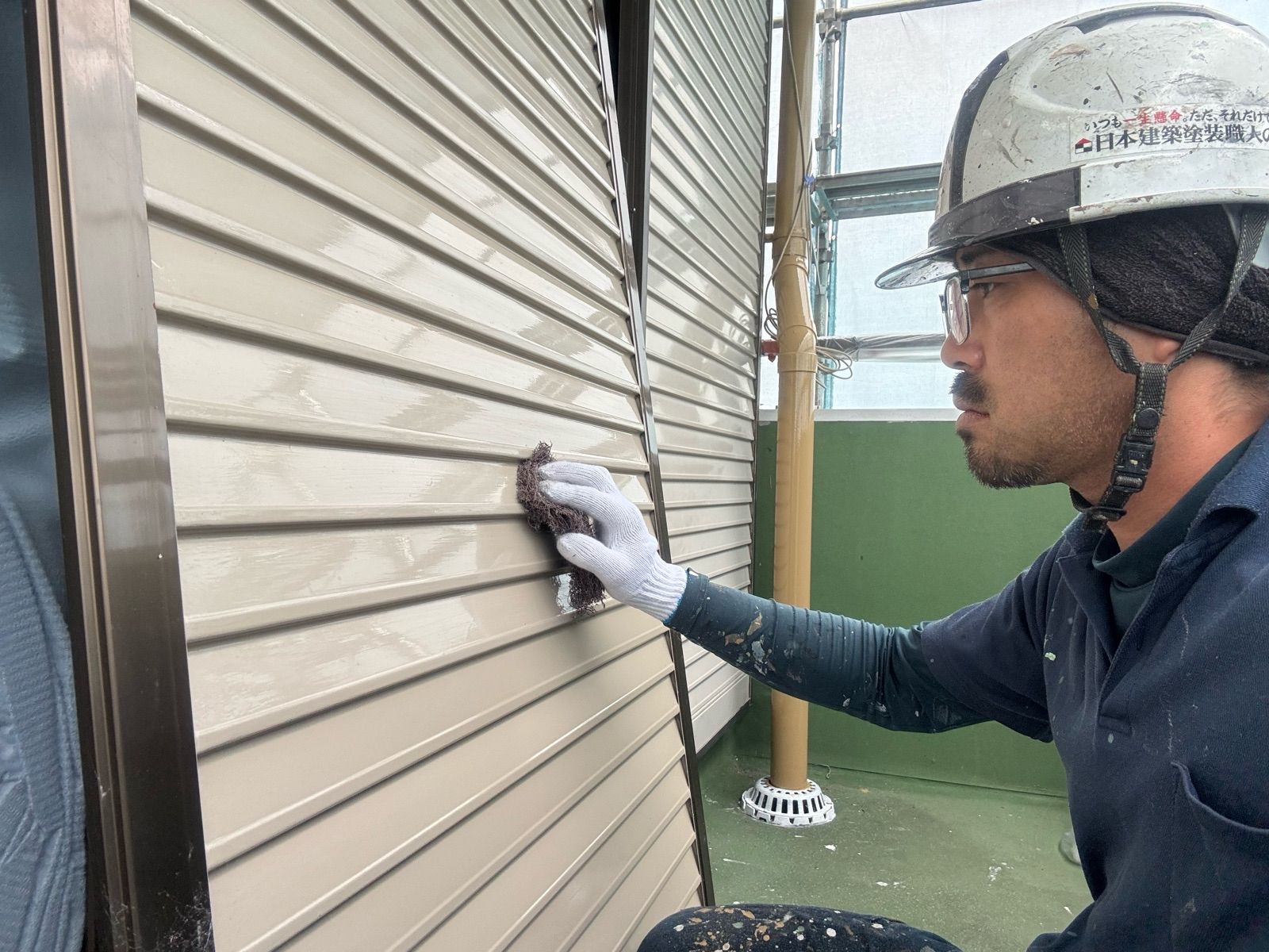 汚れやサビを落とし、塗料の密着を高めて剥がれにくくするための作業です。