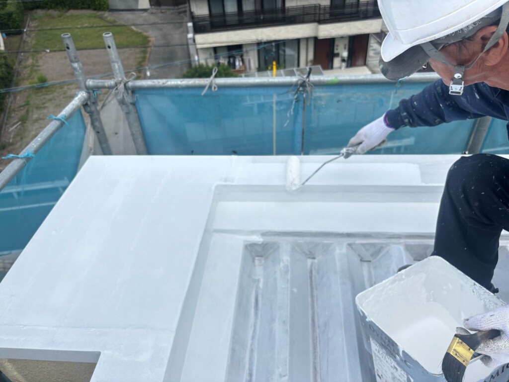 中塗り作業には、塗膜を厚くして塗料の機能を長持ちさせる効果があります。