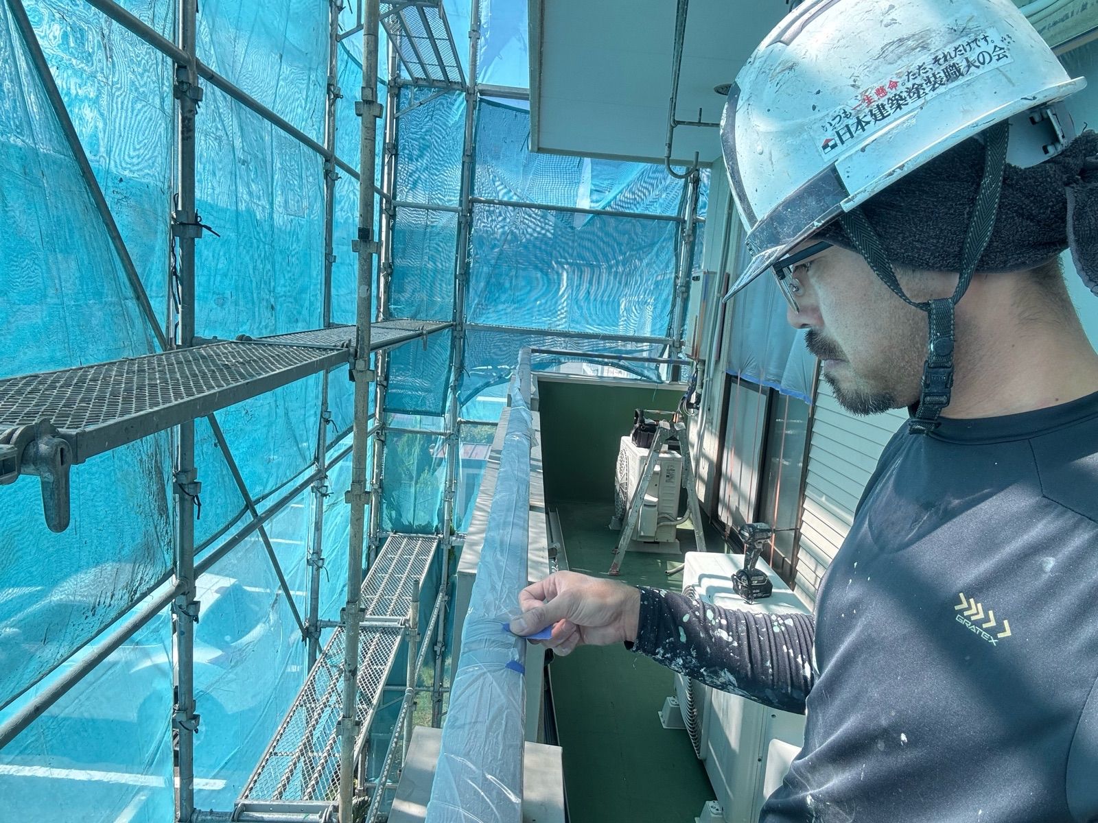 塗装をしない部分に塗料が付かないように丁寧に覆っていきます。