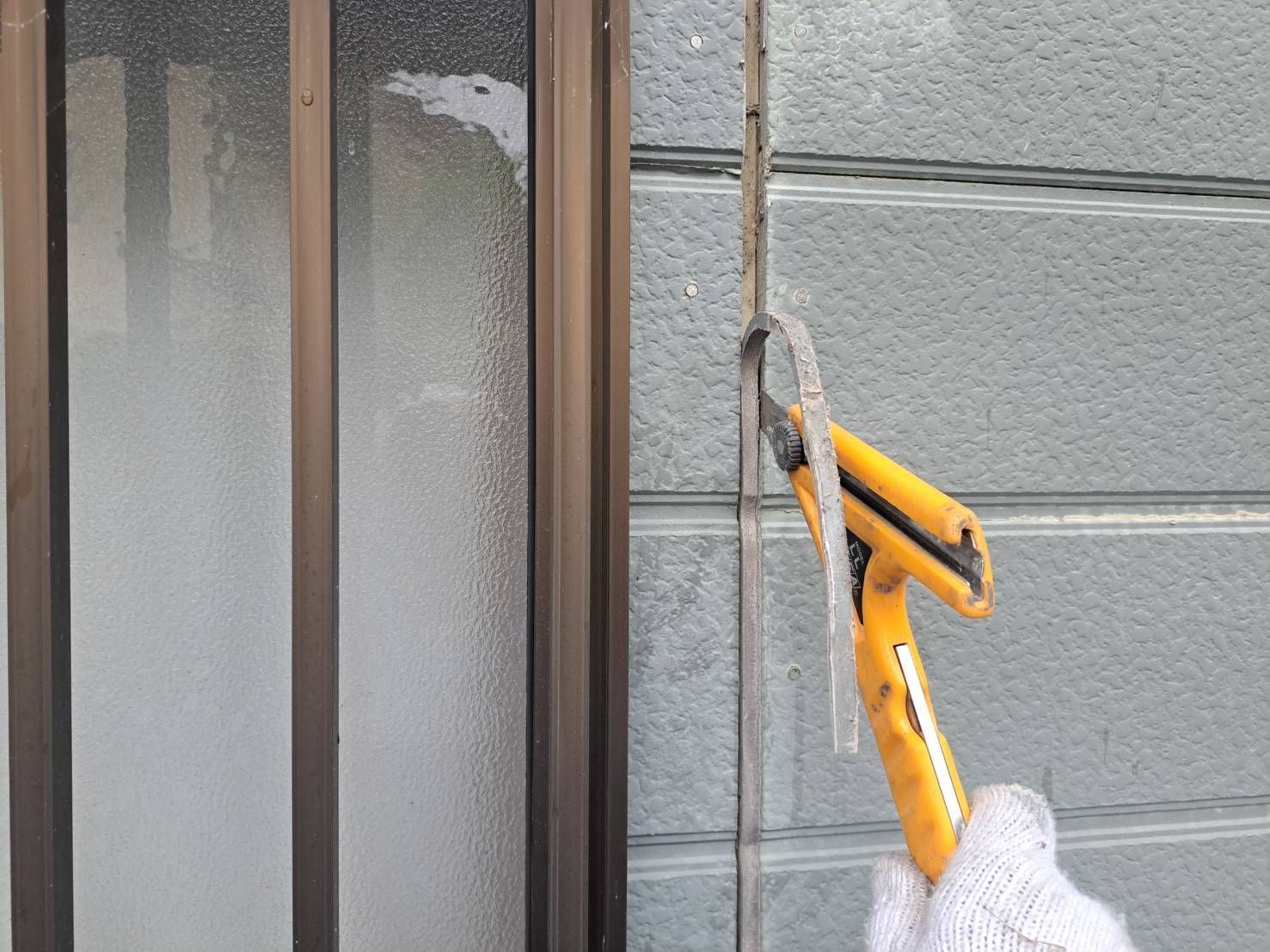 劣化したコーキングをカットしていきます。