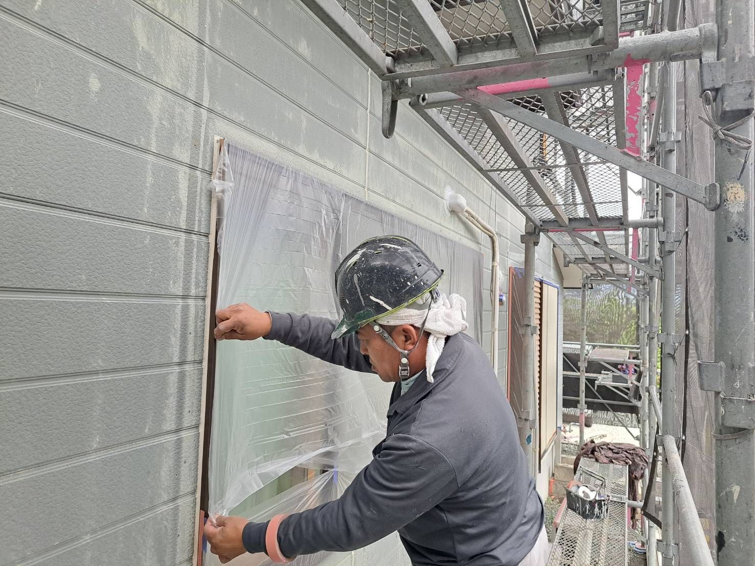 塗装をしない部分に塗料が付かないように丁寧に覆っていきます。